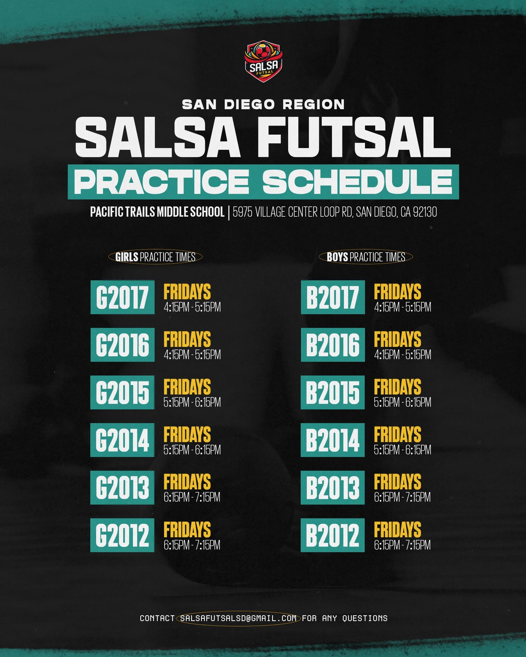 Email salsafutsalsd@gmail.com for more information!
